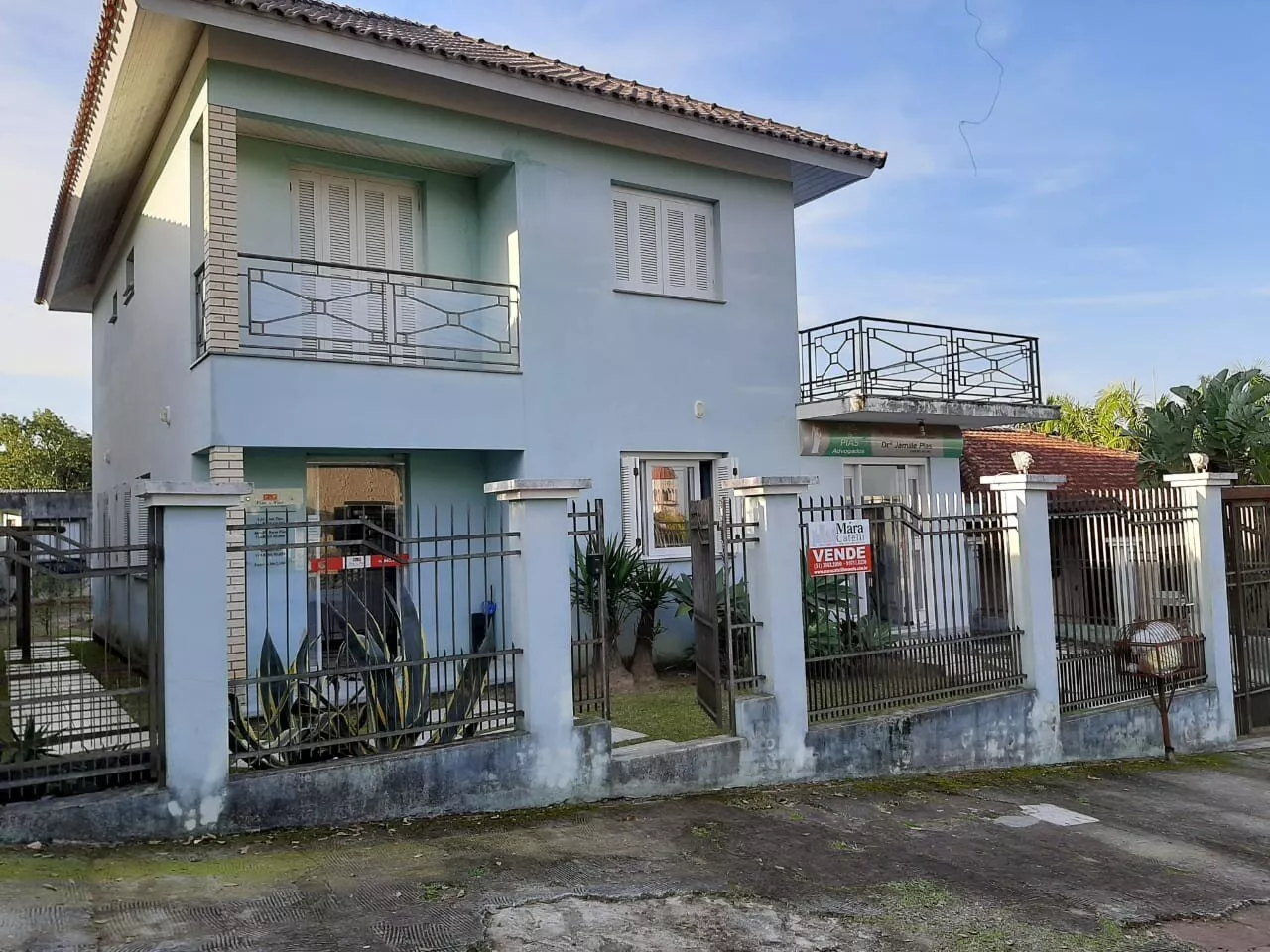 Sobrado em alvenaria, medindo 175,00m², com 03 dormitórios sendo 01 suíte, sacada com linda vista panorâmica, sala de estar, sala de jantar, cozinha com móveis sob medida, lavanderia e banheiro social. Possui parte comercial, com 03 salas e banheiro; Parte dos fundos com área aprox. de 70,00m², com garagem para 03 carros, churrasqueira e cozinha. Terreno medindo 450,00m² todo cercado.