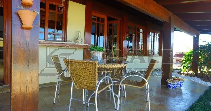 Casa de alvenaria alto padrão, com área de 398,00m², 03 suítes com closet, sendo 01 com banheira, sala de estar ampla, sala de cinema, sala de jantar, living integrado com espaço gourmet, cozinha ampla com móveis planejados, lavanderia, escritório com banheiro, dependência de empregada, garagem coberta para 04 carros, com acesso privativo, sistema de segurança, estacionamento para visitantes, área de lazer com piscina, playground e quiosque; linda vista panorâmica; terreno medindo 1.142m², todo cercado.
