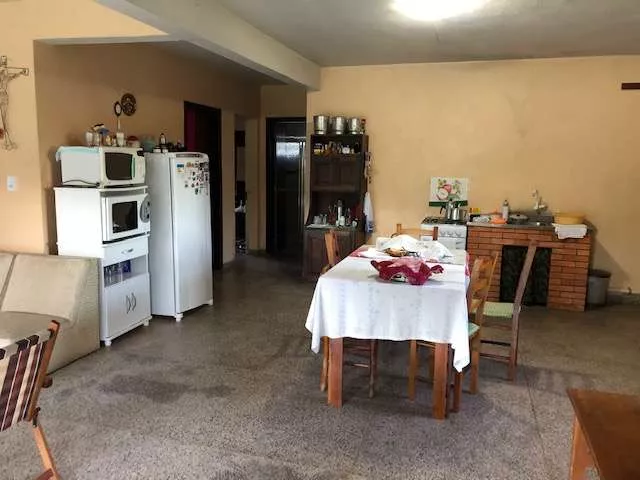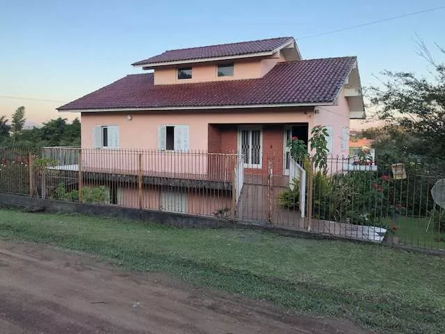 SOBRADO DE ALVENARIA com área total de 220m², com 05 dormitórios sendo 01 suíte, com sala de estar e cozinha, e 02 banheiros auxiliares. Teto e platibanda em chapa. DOIS TERRENOS um com área de 375m² (0nde encontra-se a casa) e outro ao lado com área de 575m², onde possui uma casa em construção com área de 45m² e pavilhão para caminhão somente com cobertura.