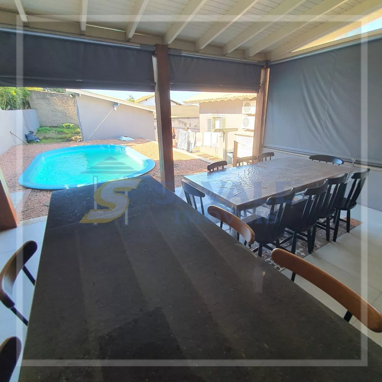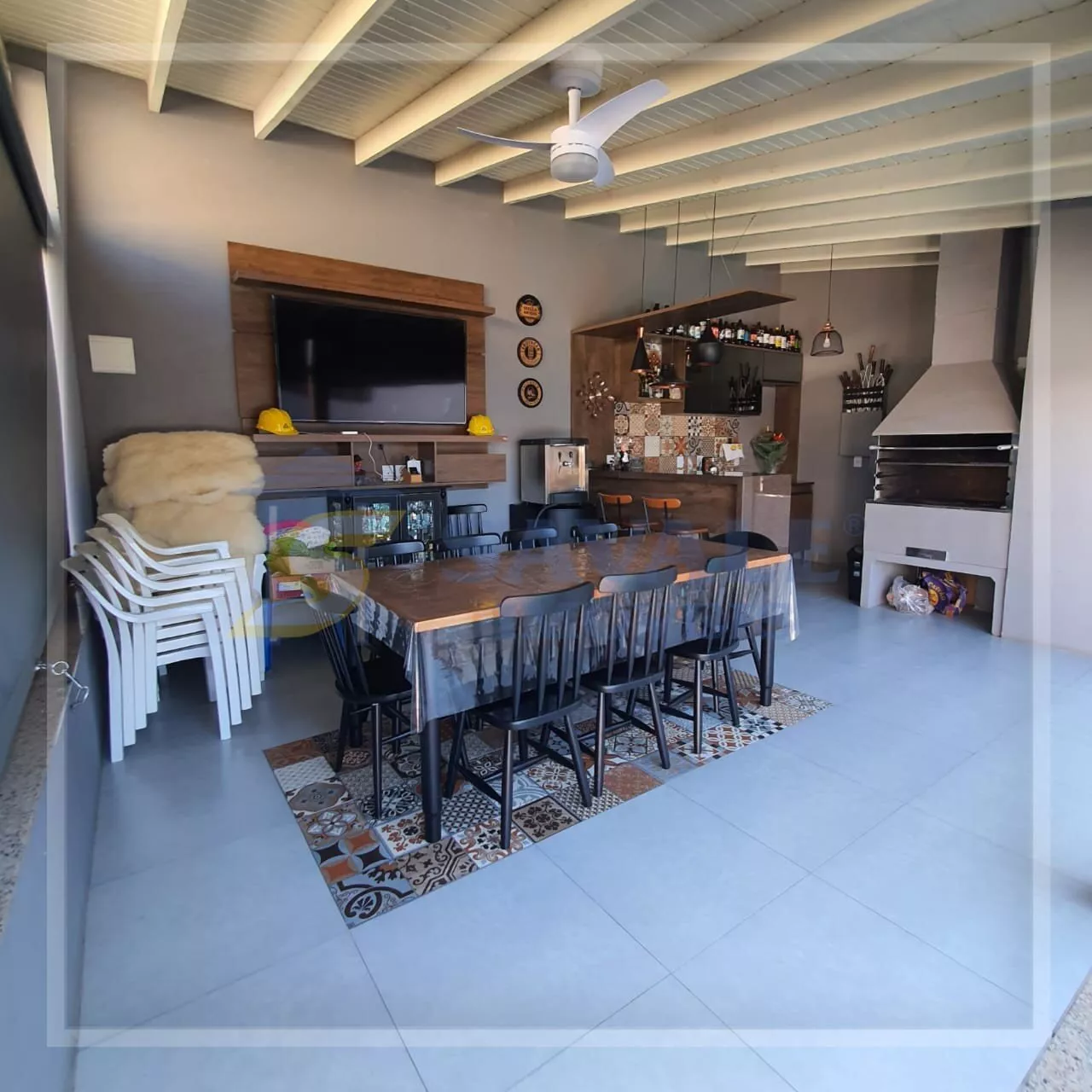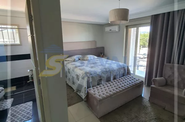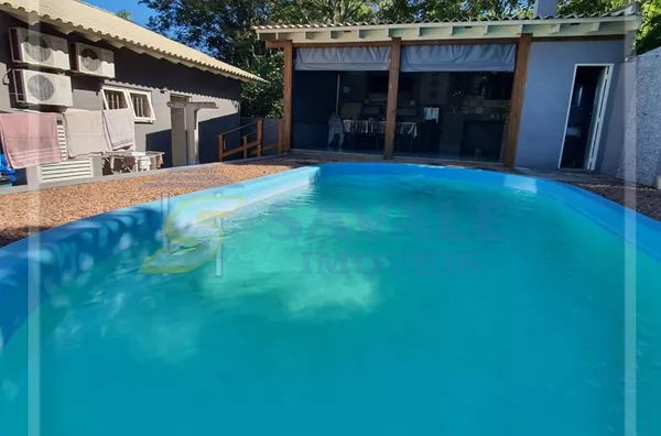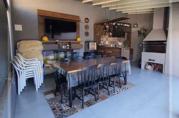Casa de alvenaria, 244,12m², com 03 dormitórios, sendo uma suíte, 4 banheiros, living 02 ambientes com lareira, 1 garagem com espaço gourmet com churrasqueira integrados, piso porcelanato, acabamento em gesso, aquecimento elétrico e gás, ar condicionado split, área de serviço, armário embutido, cozinha americana com móveis planejados, despensa, gabinete, lavabo, lustres, muro com sistema de cerca elétrica, piscina, portão de garagem automático, quiosque com churrasqueira e piscina, sacada na sala e no quarto principal, sala de TV, mobilia dos quartos, cozinha e banheiros, Bairro Várzea/centro, terreno 450,00m², alto, frente nascente, Rua asfaltada. Santo Antônio da Patrulha.