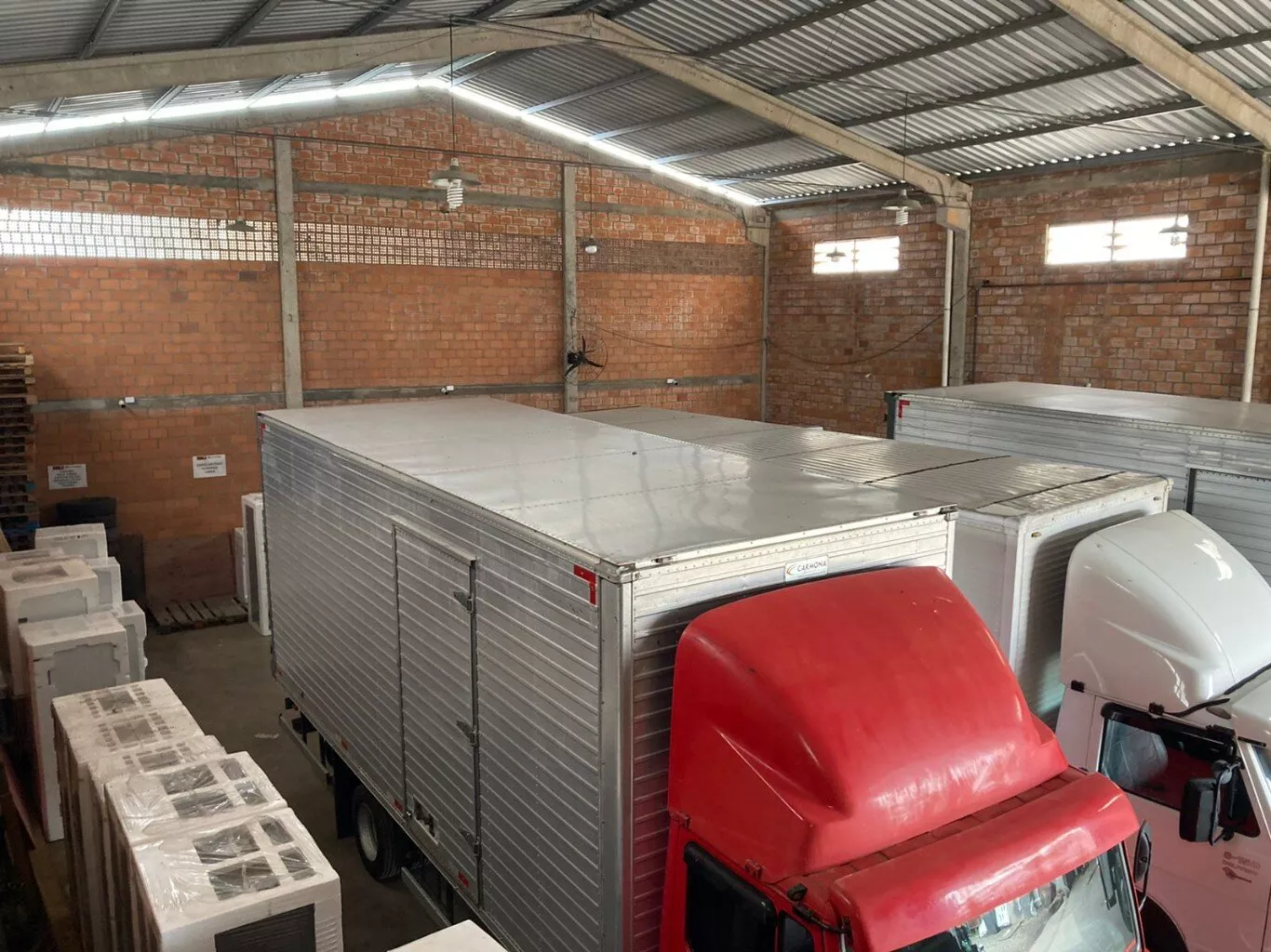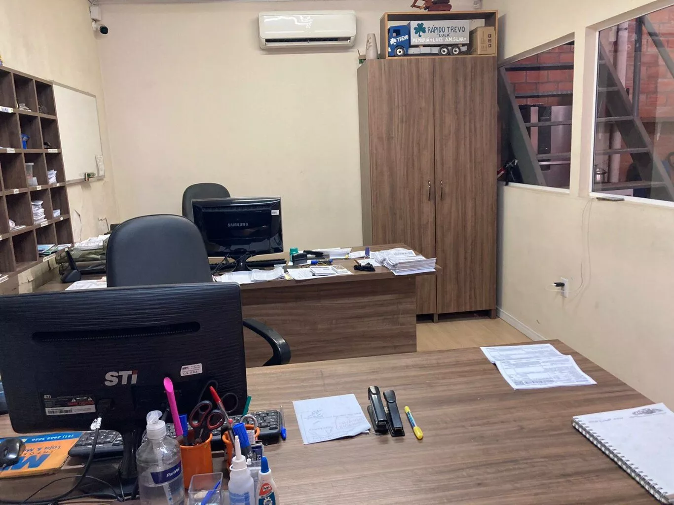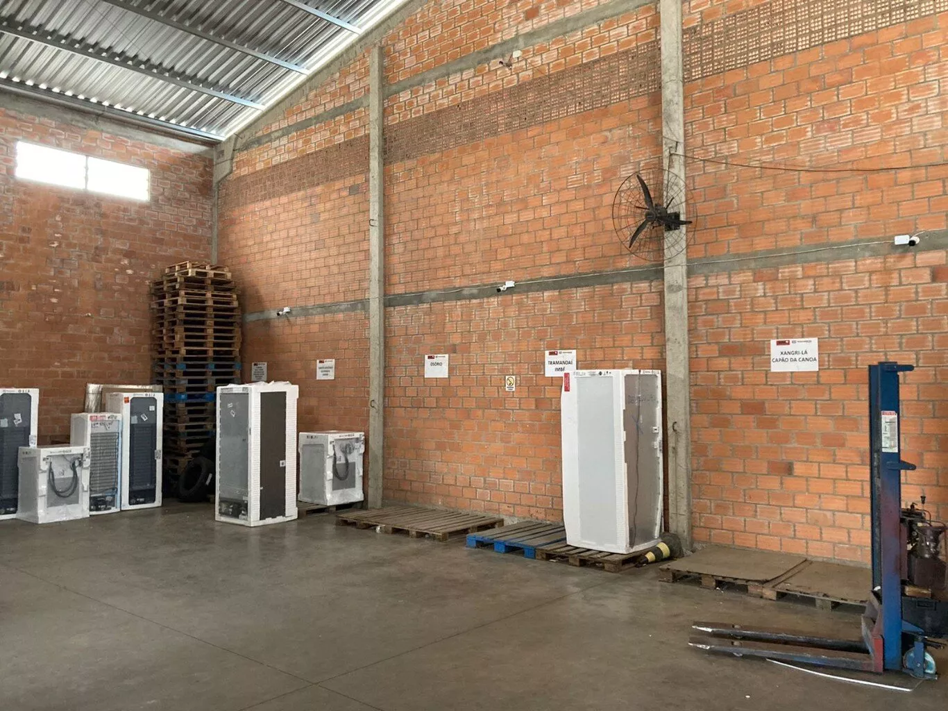Pavilhão com a área de 315,00m², (15,00X21,00m), 6,5m de pé direito, telhas em aluzinco, calhas de chuva em alumínio, janelas basculantes em policarbonato piso polido com 18,00cm com malha de aço, preparado para suportar carga pesada, portão com 05,00m de largura de contrapeso com movimentador eletrônico, com sistema de câmera com monitoramento Intelbrás com DVR, dois escritórios montados com 20,00m² cada com banheiro com porcelanato, móveis planejados, com sofá, televisão, 03 computadores, impressora profissional, 02 ar condicionados, construído sobre um terreno com 459,oom², sendo 15,30 X 30,00 metros, frente nascente, 100,00 metros da Av. Affonso porto Emerim. Possibilidade de renda de locação mensal de R$ 3.000,00.