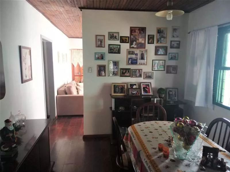 Casa de alvenaria, com 03 dormitórios, sala de estar, sala de jantar, cozinha com piso cerâmico, banheiro, banheiro auxiliar, área na frente, piso em madeira de ipê, garagem fechada para 01 carro, garagem aberta, Quarto individual com banheiro, terreno 360,00m², todo fechado com muro e grade.