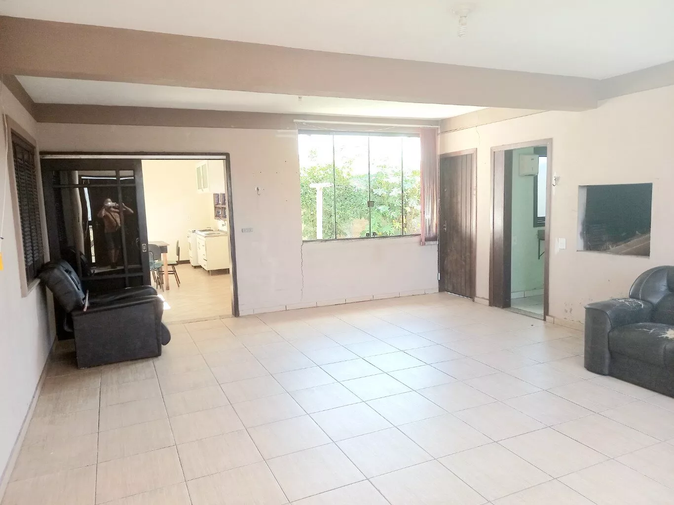 Casa de alvenaria, medindo 400,00m², com 05 dormitórios, sendo 01 suíte, 02 cozinhas, 02 salas de estar, 03 banheiros, sala de jogos, churrasqueira, lavanderia, estrutura em laje para segundo piso, com acabamento em gesso; instalação à gás para água quente/fria. Terreno medindo 401,25m², todo cercado.