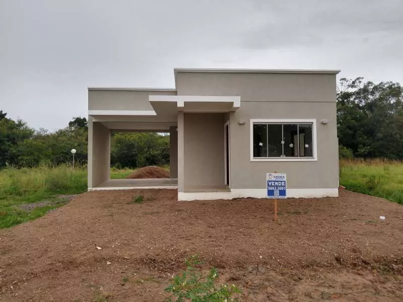 Casa de alvenaria nova, medindo 76,05m², com 02 dormitórios, sala de estar/ jantar integradas, cozinha, área de serviço, banheiro social e garagem fechada; Terreno medindo 314,14m², todo cercado por telas. Aceita financiamento bancário.