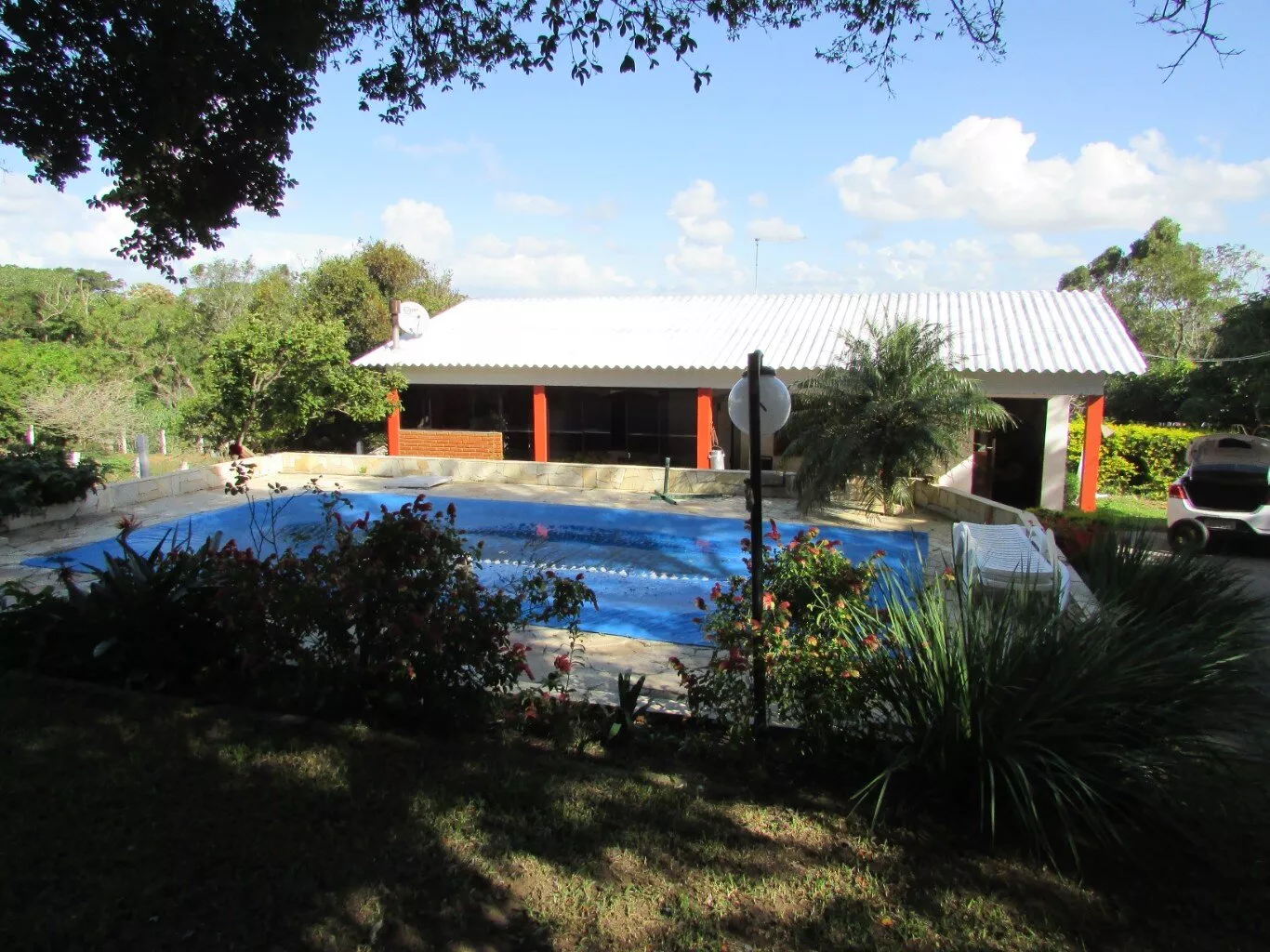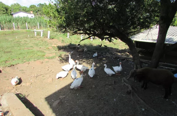 Excelente sítio, medindo 11.411,06m², com 02 casas de alvenaria, sendo uma com área aprox. de 80,00m², com 01 dormitório, sala de estar ampla, sala de jantar, cozinha campeira, banheiro e área coberta p/ 01 carro; Casa 02 com área aprox. de 50,00m², com 01 dormitório, sala, cozinha e banheiro; Possui piscina de fibras em bom estado. Galpão, galinheiro, depósito, árvores frutíferas e potreiro; Acesso por via asfaltada.