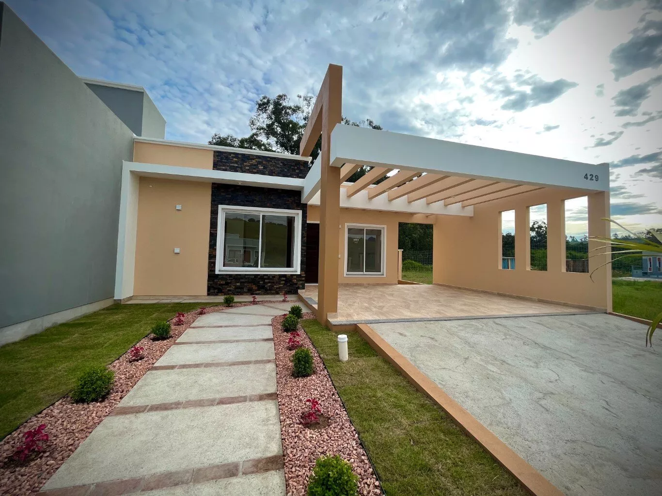 Lançamento: Casa de alvenaria nova, medindo 65,61m², com 02 dormitórios, sendo 01 suíte, sala de estar, sala de jantar, cozinha, lavanderia, espaço gourmet com churrasqueira, banheiro social e pergolado (descoberto) com vaga para 02 carros. Imóvel com teto em laje, instalação para aquecimento à gás, aberturas em alumínio e piso porcelanato; Terreno medindo 250,00m² (10,00 x 25,00) todo cercado. Pronto para financiar.
