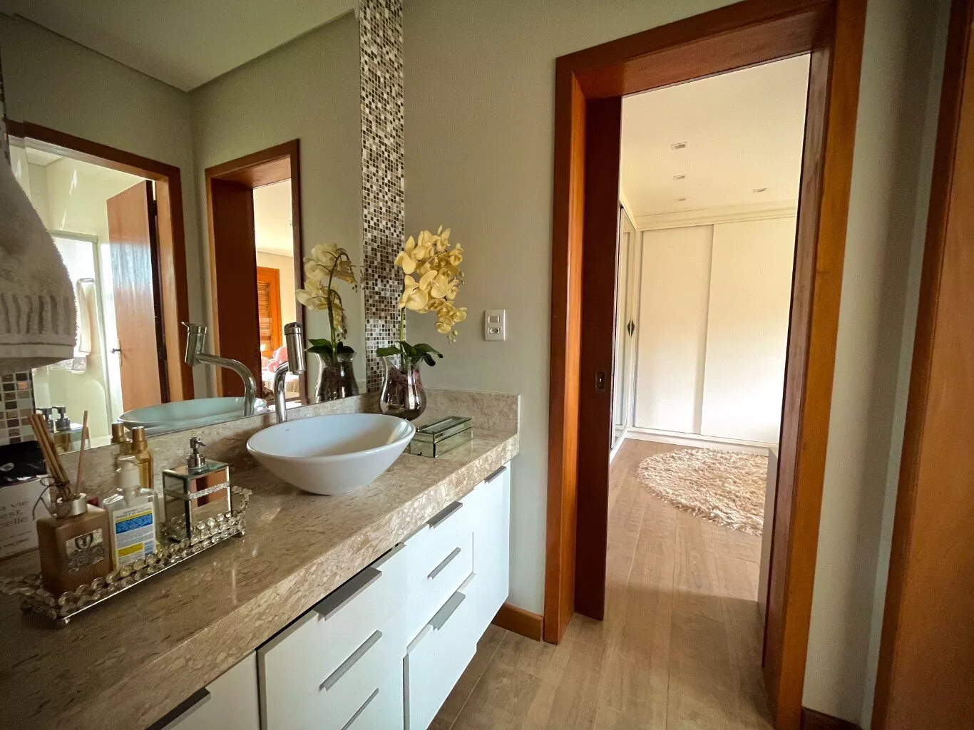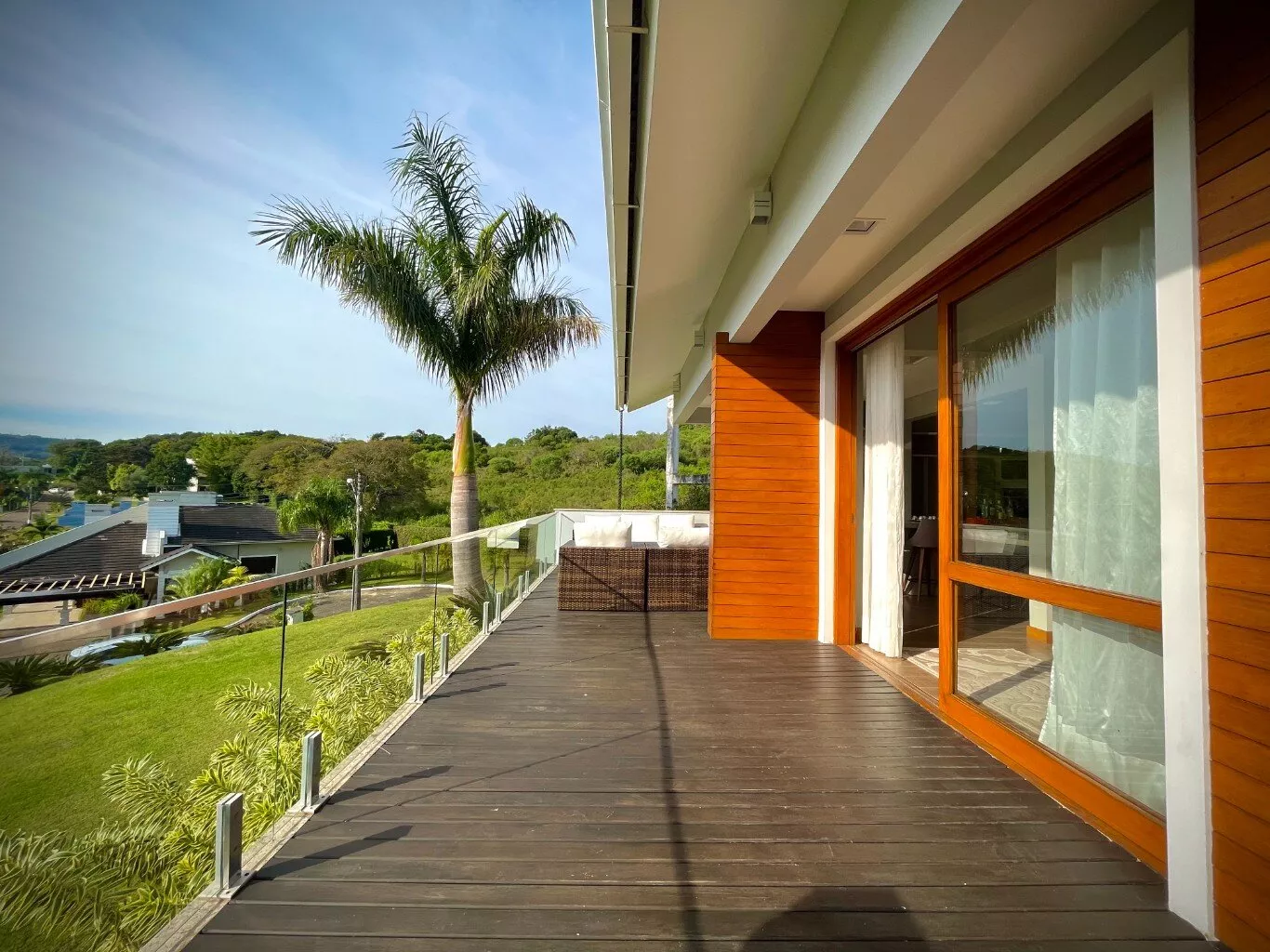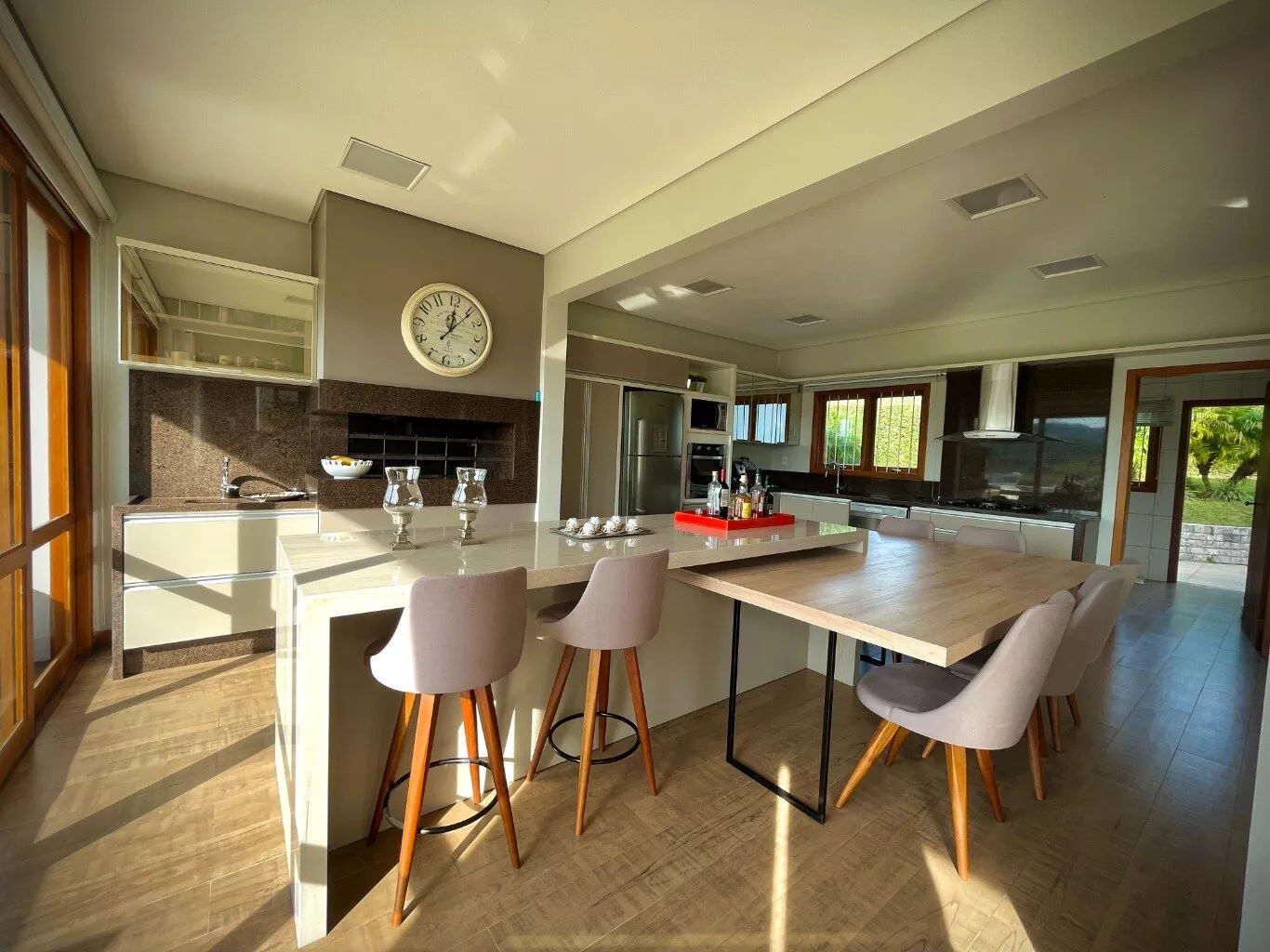 Excelente casa de alvenaria, com área construída de 295,12m², distribuídos em 03 dormitórios, sendo uma suíte com closet e hidro, total de 03 banheiros de fino acabamento, sala e cozinha em conceito aberto formando um amplo ambiente com lareira e sacada integrada com linda vista panorâmica, churrasqueira, aberturas em pvc, aquecimento a gás nos banheiros e cozinha, revestimentos em porcelanato, com designer interno glamouroso e funcional, garagem para 02 carros estacionados lateralmente, depósito, escadas internas em granito, totalmente mobiliada em ótimo padrão, edificada sobre um terreno com a área 1.244,00m², ornamentado com lindo jardim, incorporado ao conjunto de verde e a tranquilidade do local, estando ao lado de excelente estrutura de laser que proporciona conforto e comodidade com baixo custo.