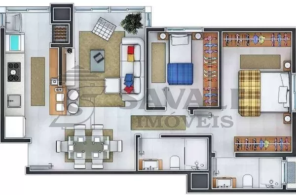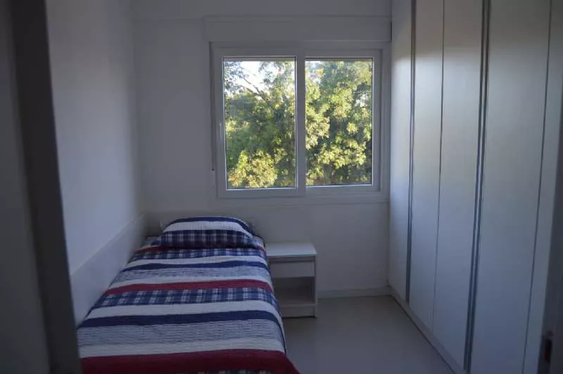 APARTAMENTO MOBILIADO: Apartamento 203 (1º andar - frente/sul), medindo 66,96m², 02 dormitórios, sendo um suite, living com 02 ambientes, banheiro social, cozinha, lavanderia, sacada integrada, churrasqueira individual, piso em porcelanato, Prédio com elevador, medidor de luz, água e gás individuais, box de garagem, esperas para split e aquecedor de água. Consulte-nos sobre valores.