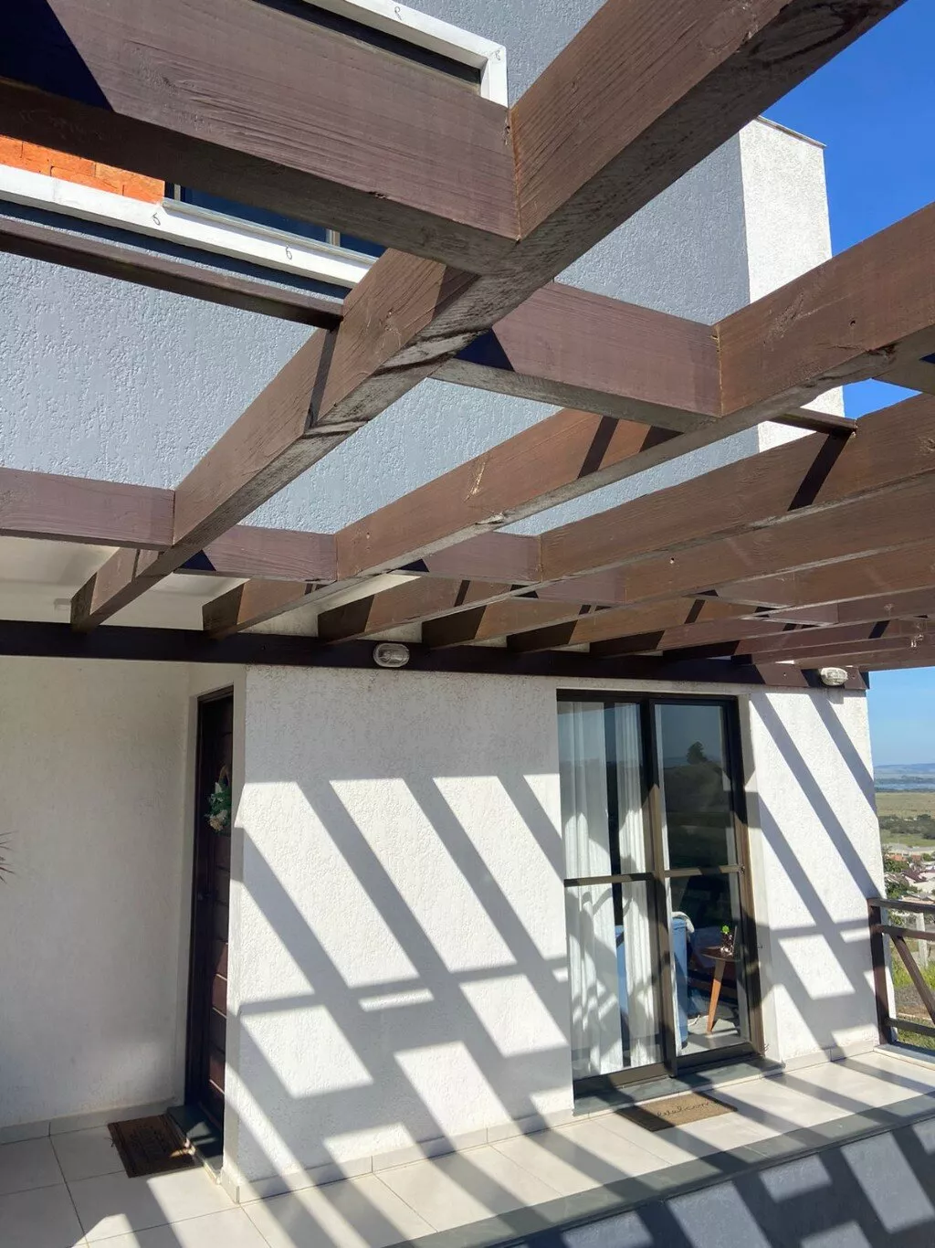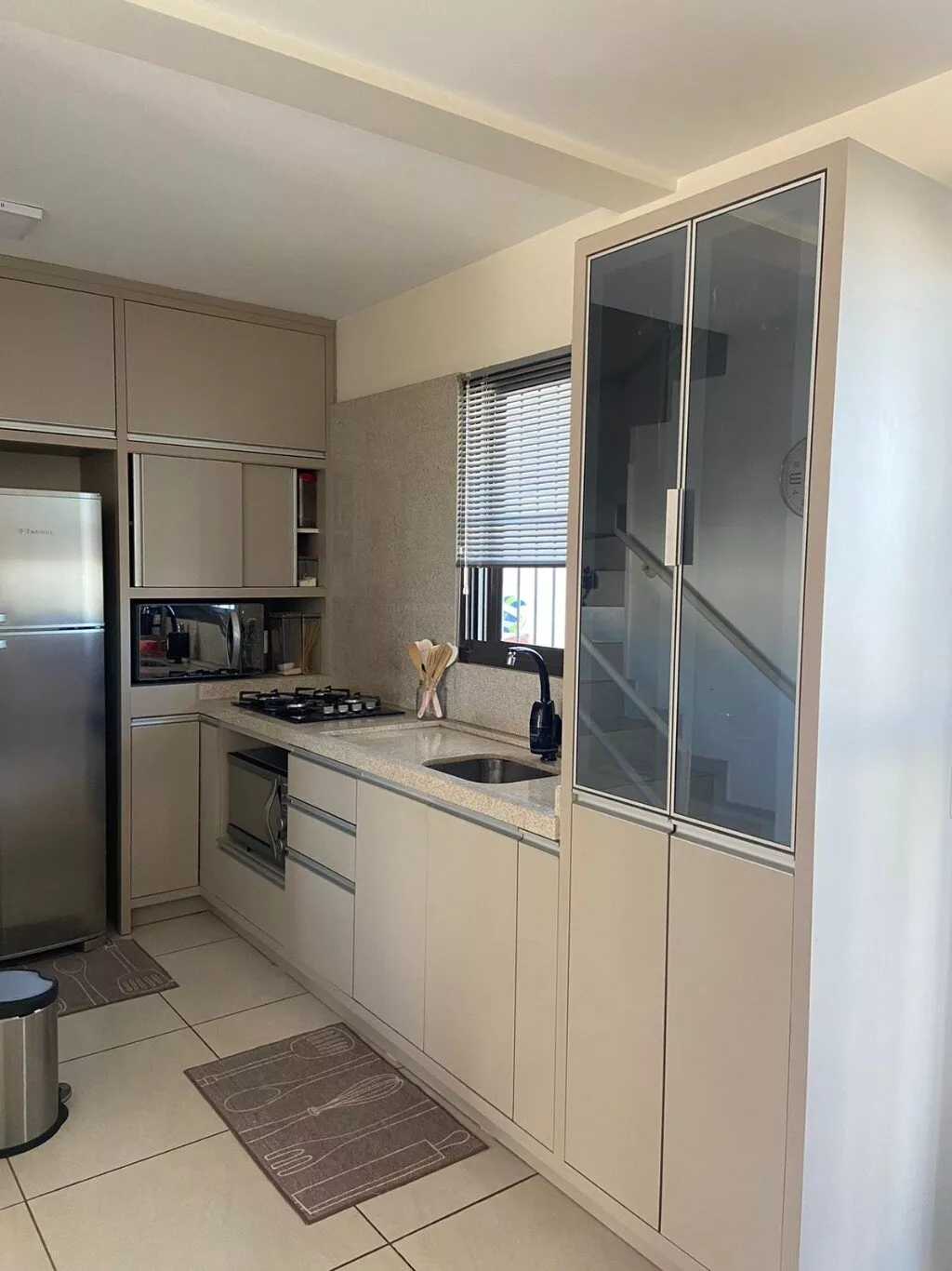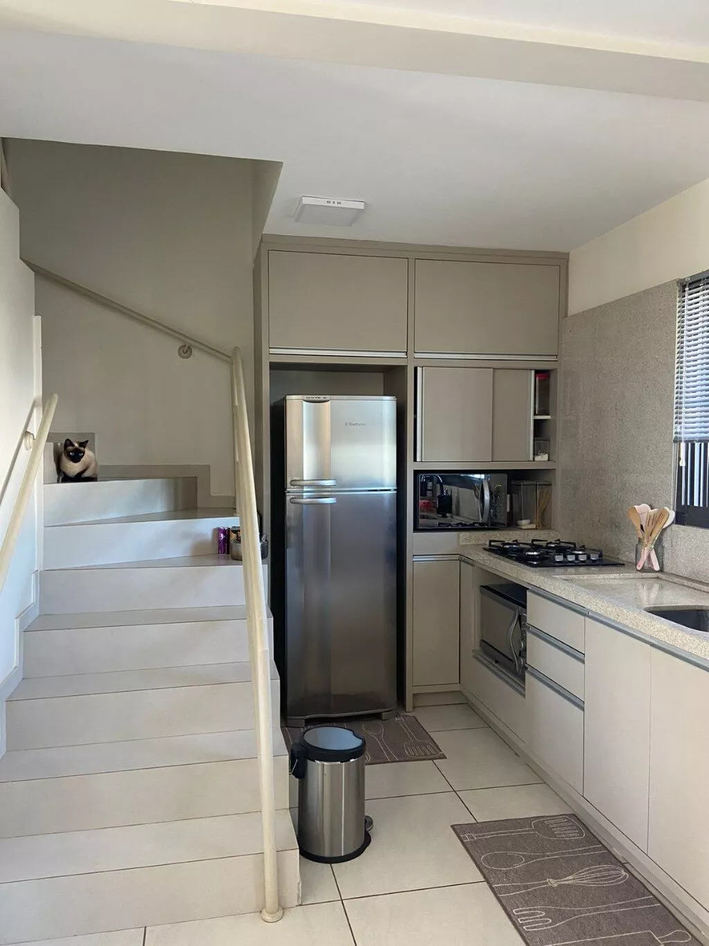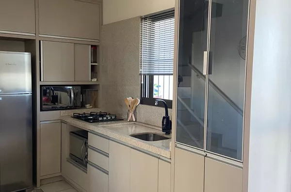 Excelente sobrado em alvenaria, medindo 153,94m², com 03 dormitórios, sendo 01 suíte, sala de estar/jantar, cozinha com móveis sob medida, banheiro social, banheiro auxiliar, lavanderia e pergolado para 02 carros. Condomínio com salão de festas.