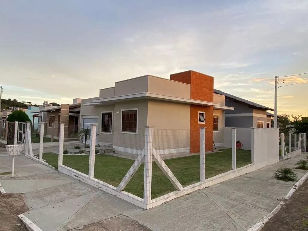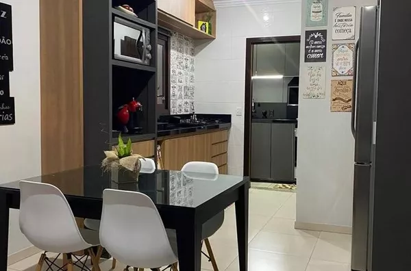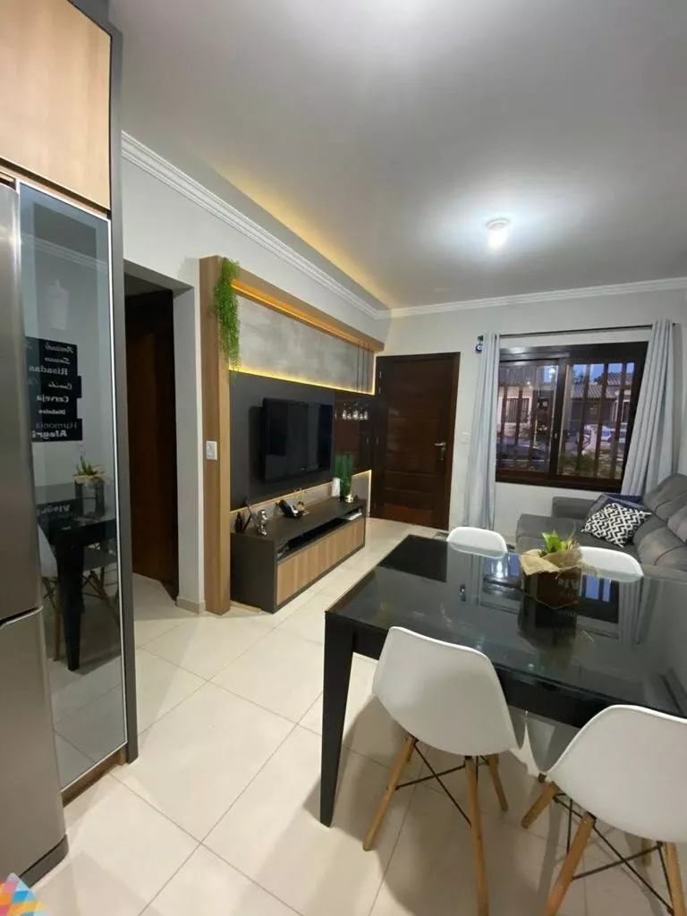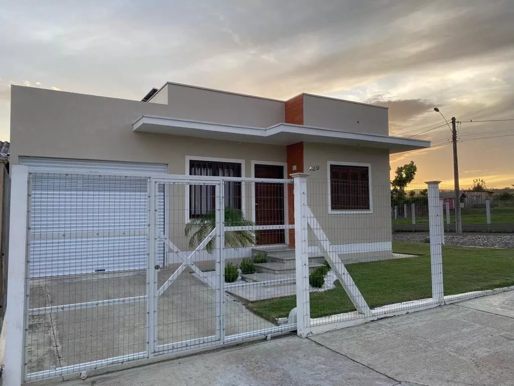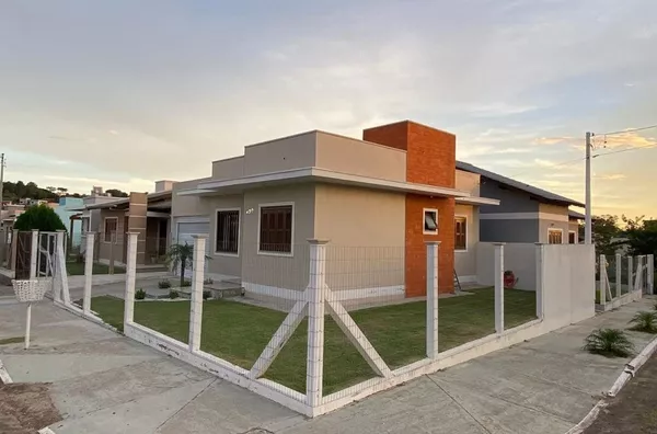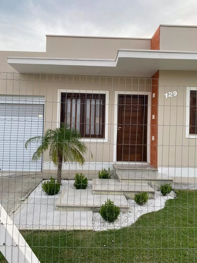 Imóvel completo possuindo 80m² de área construída, sala e cozinha conjugadas, 2 dormitórios, banheiro social, área de serviço interna, moveis planejados, geladeira duplex, placas solares, garagem com espaço gourmet e lareira.