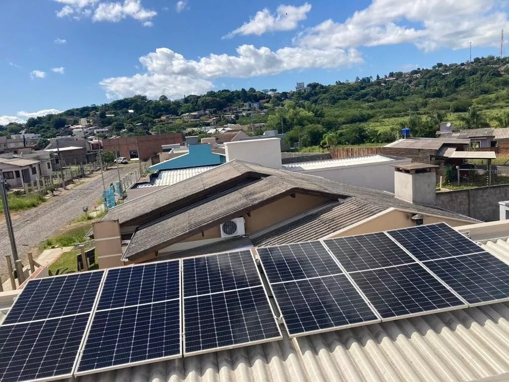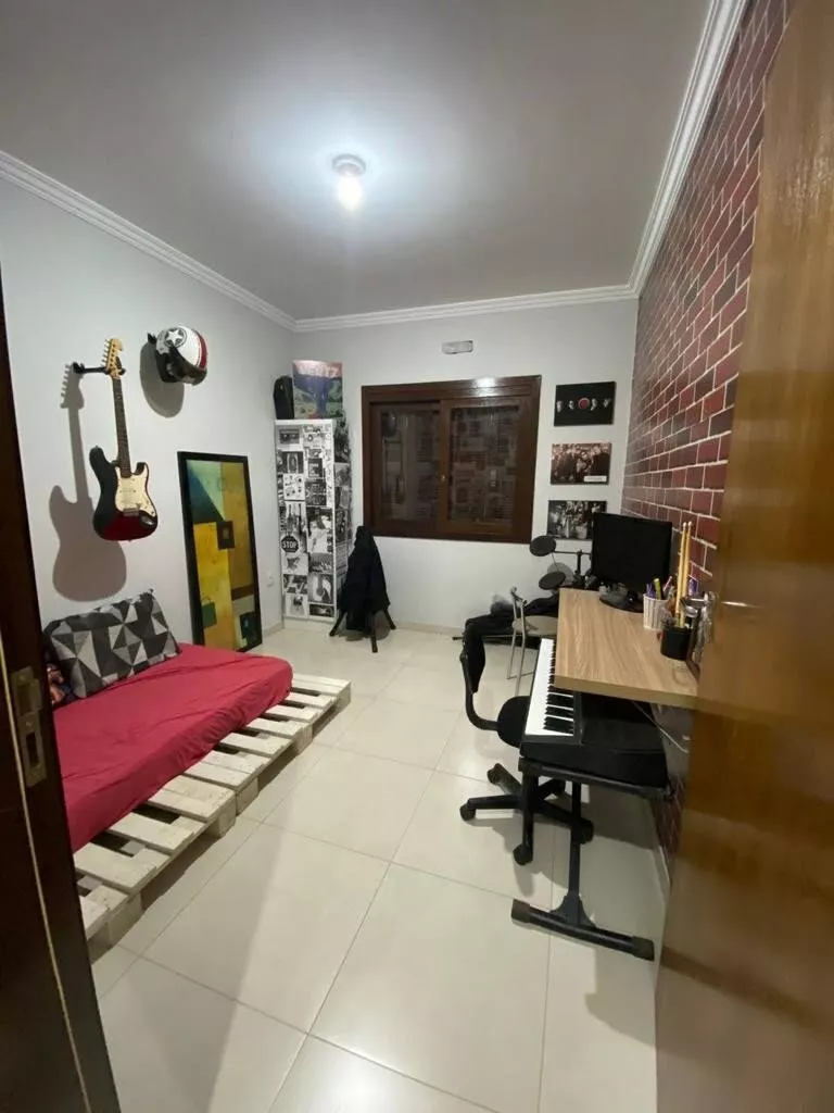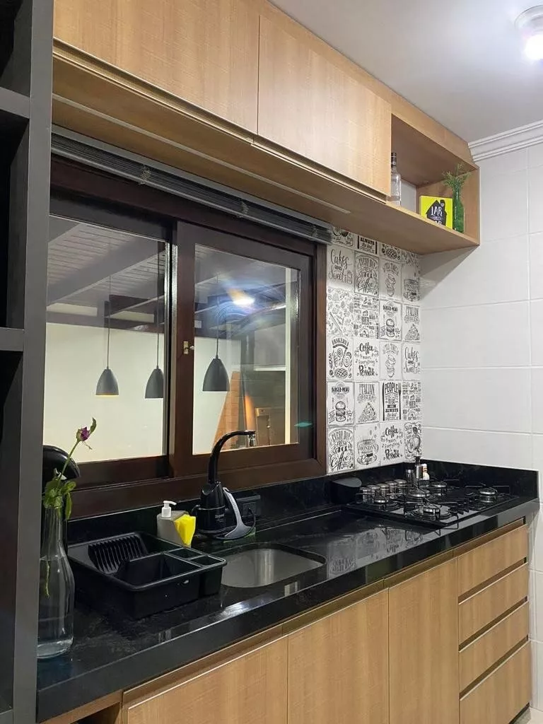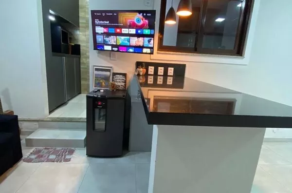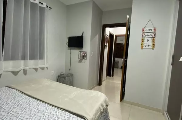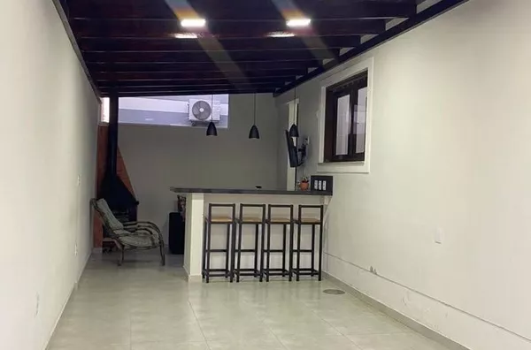 Imóvel completo possuindo 80m² de área construída, sala e cozinha conjugadas, 2 dormitórios, banheiro social, área de serviço interna, moveis planejados, geladeira duplex, placas solares, garagem com espaço gourmet e lareira.