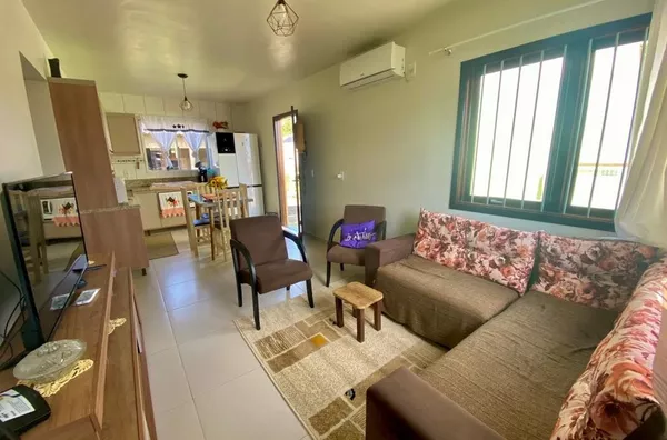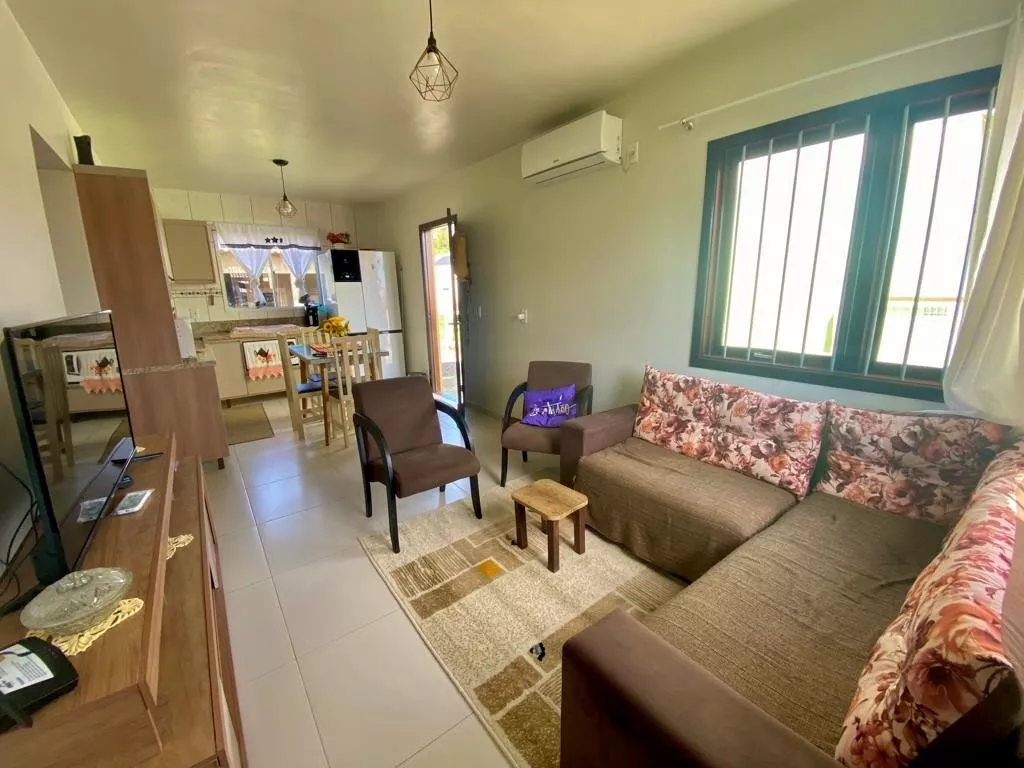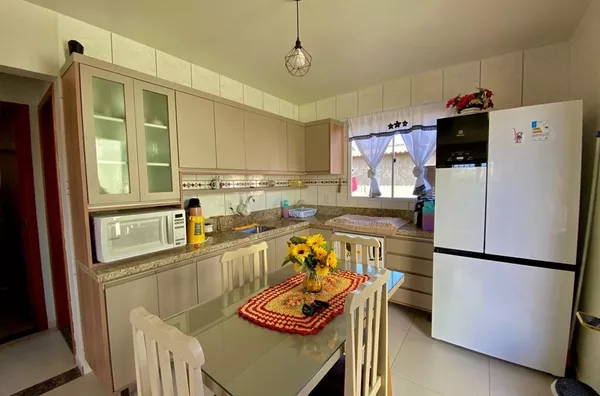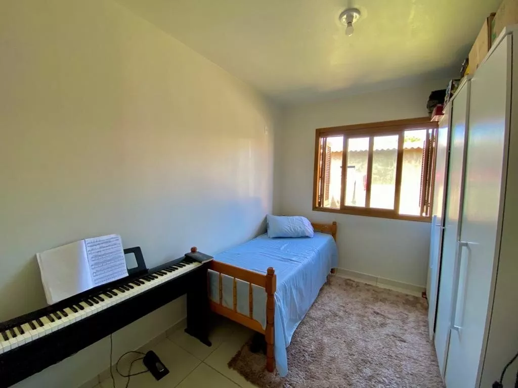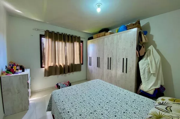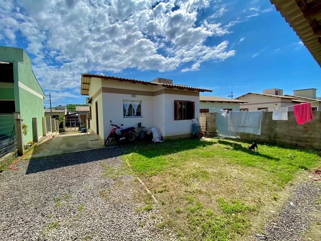 Casa de alvenaria, medindo 60,00m², com 02 dormitórios amplos, sala de estar/jantar, cozinha com móveis sob medida (conforme imagens) e banheiro social; Possui garagem com área de 45,00m2, com 01 banheiro, vaga para 01 carro e espaço para festas, com churrasqueira (falta pintura e acabamentos do forro); Terreno medindo 251,80m², todo cercado. ACEITA FINANCIAMENTO BANCÁRIO.