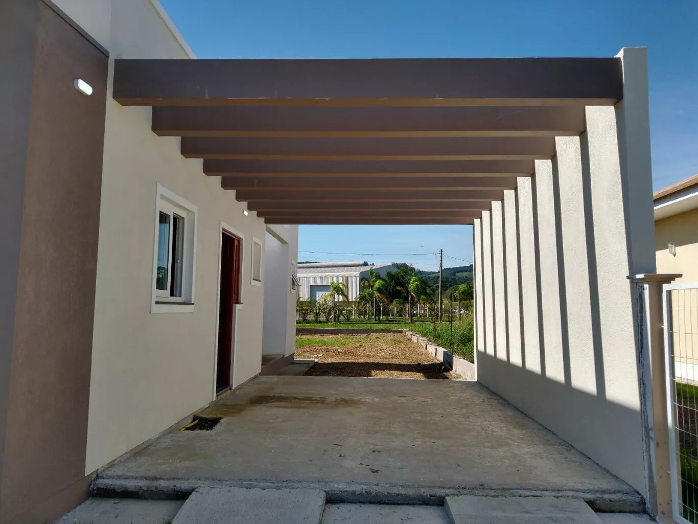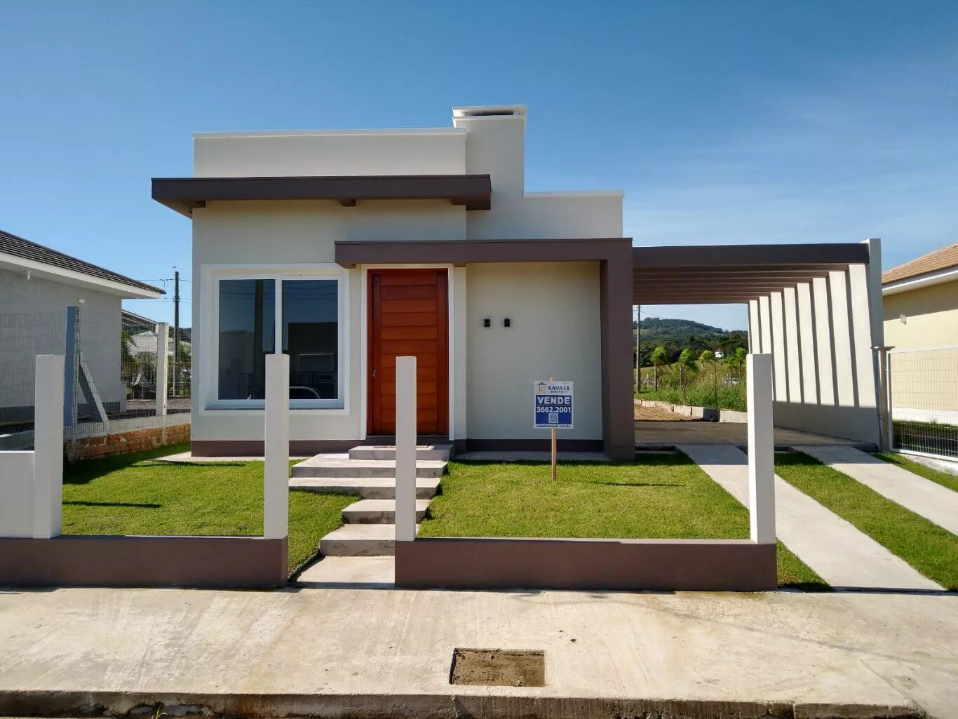 Casa de alvenaria nova, medindo 60,00m², com 02 dormitórios (com espera para o 3º dormitório), sendo 01 suíte, sala de estar com lareira, sala de jantar, cozinha, lavanderia e banheiro social. Piso porcelanato e aberturas em PVC; Pergolado para 01 carro. Terreno medindo 360,00m² (12,00 x 30,00), todo cercado. Aceita financiamento bancário.