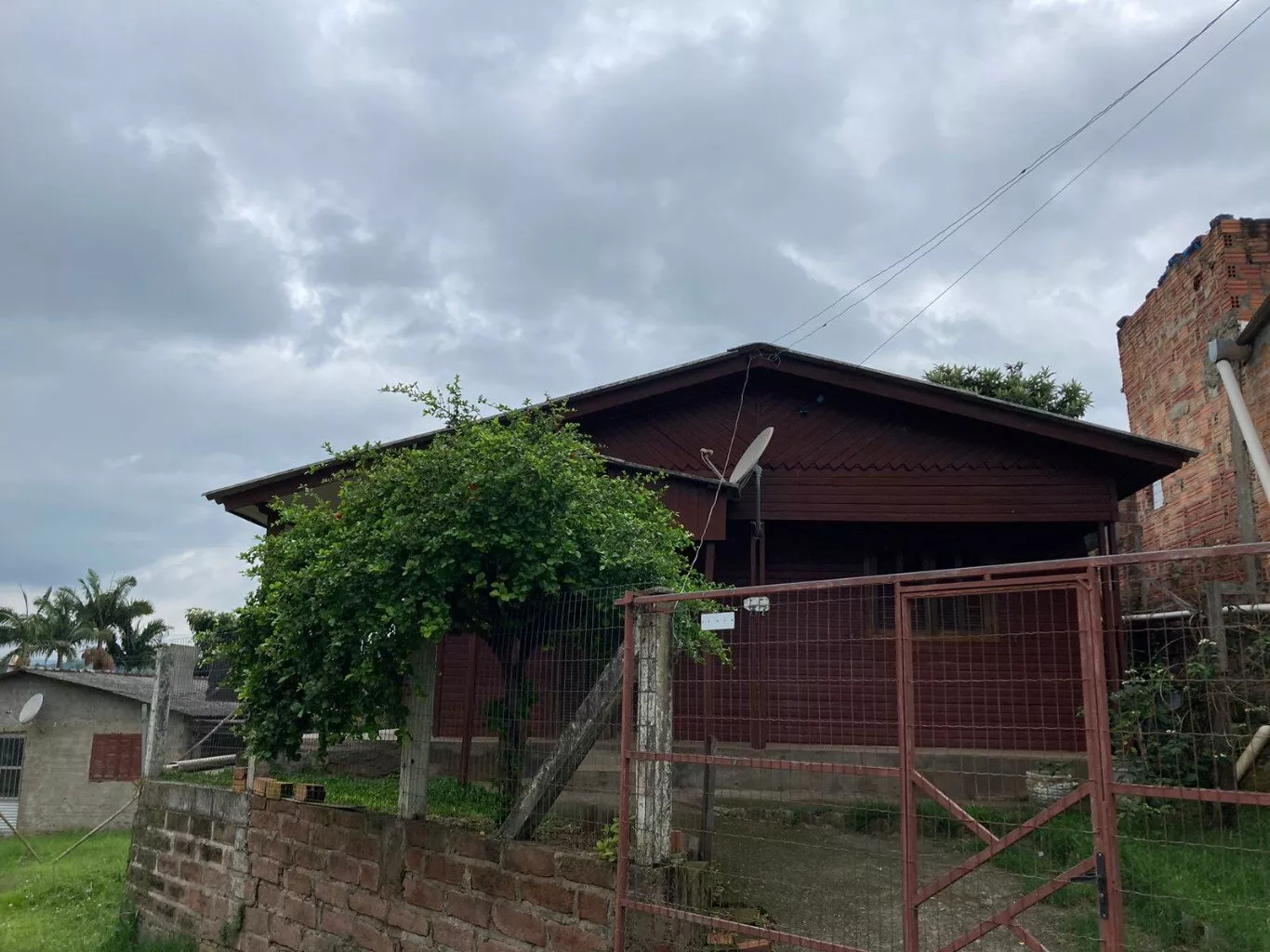 Casa em madeira com uma área construída de 60,00m², sendo 2 dormitórios, sala e cozinha integrados, banheiro e área de serviço.