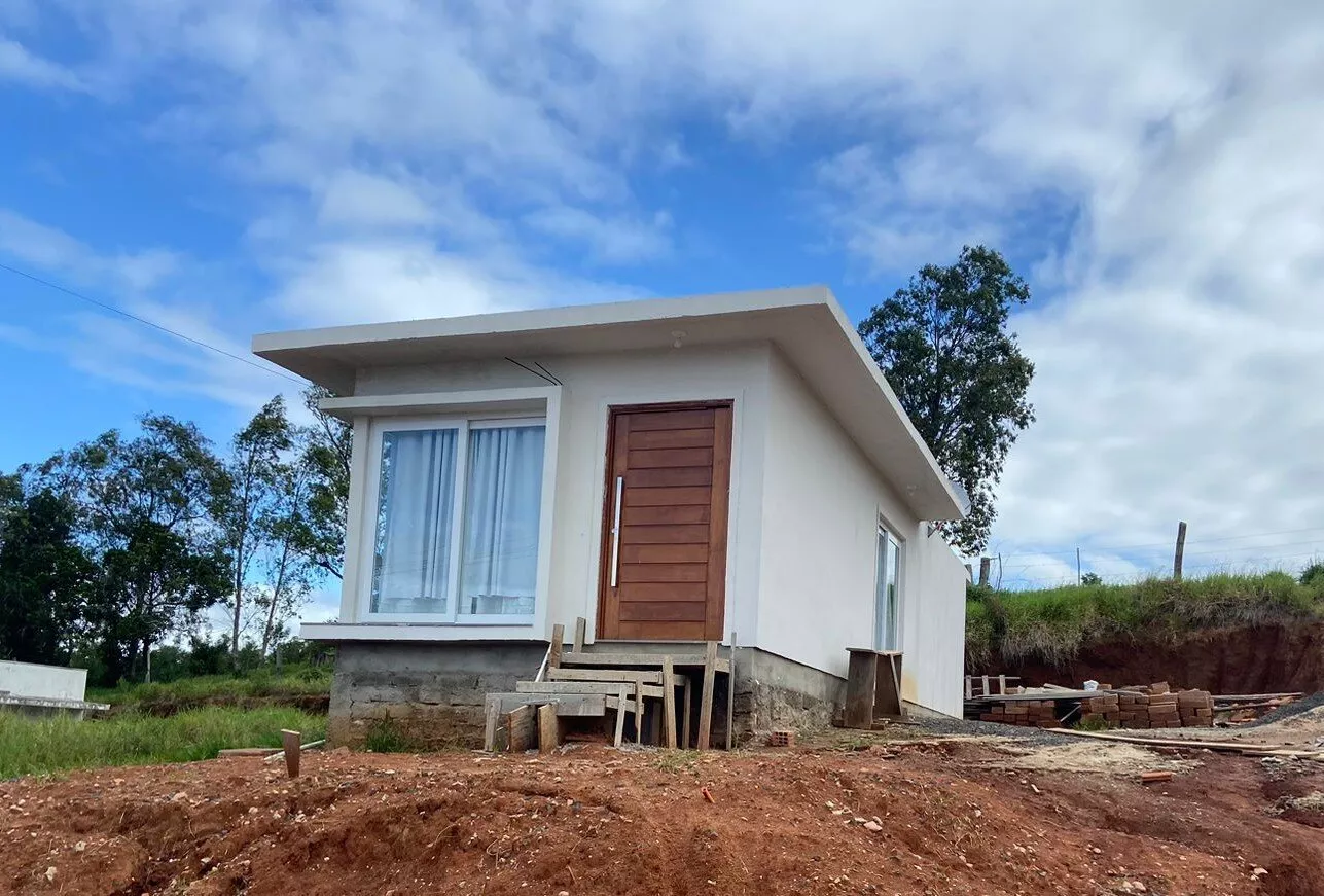 Casa de alvenaria nova, medindo 55,00m², com 01 dormitório (possui projeto para ampliação), sala de estar ampla, cozinha, jantar e banheiro social. Teto em laje, aberturas em PVC e piso porcelanato. Terreno de esquina, medindo 300,00m².