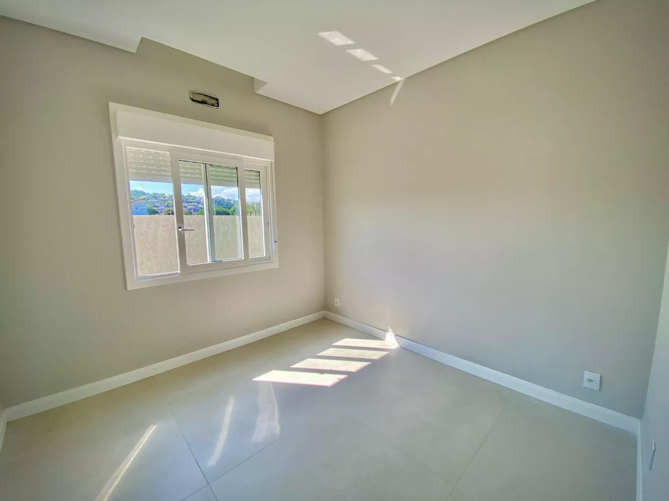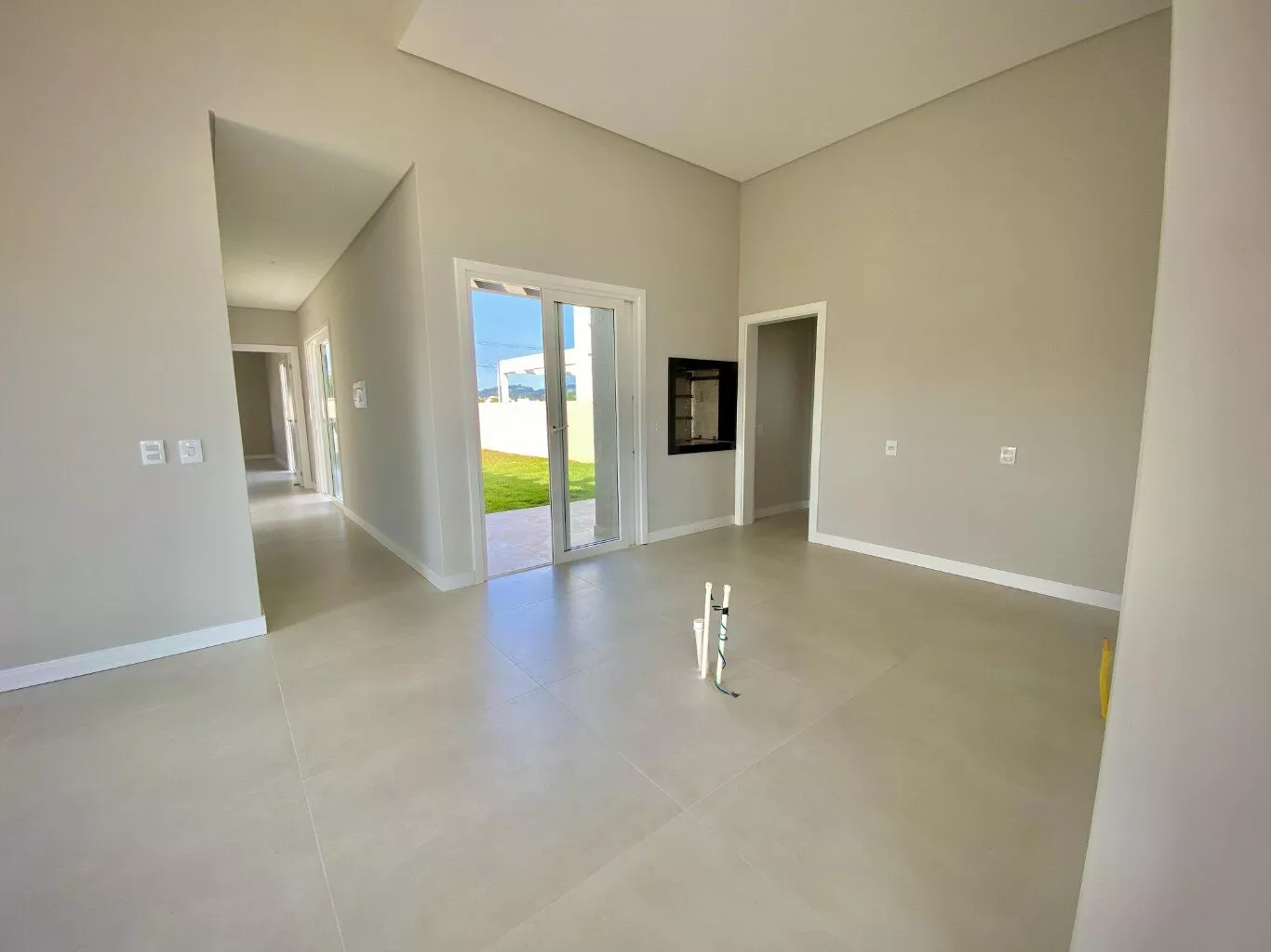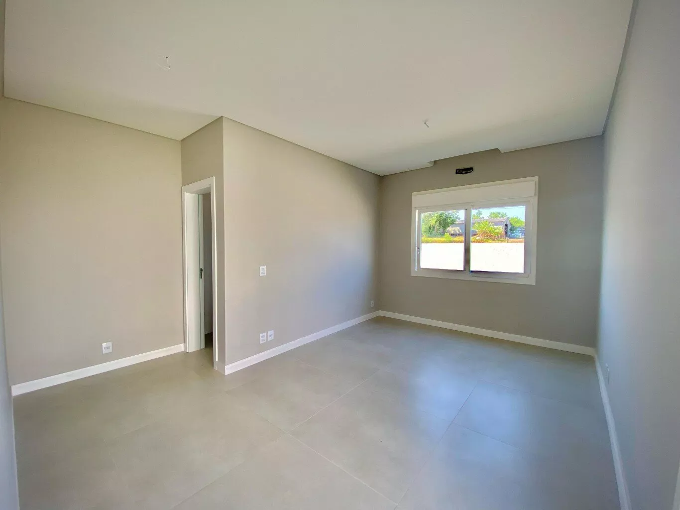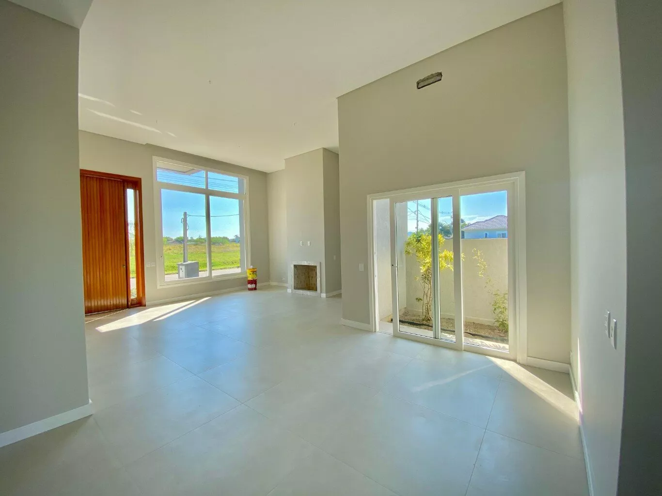 Casa de alvenaria nova, alto padrão, arquitetura moderna, com área privativa de 151,00m², com 03 dormitórios, sendo 01 suíte, banheiro americano, cozinha, jantar e estar integrados, lareira, lavanderia, lavabo e área com churrasqueira; Garagem para 02 carros (lado a lado); aberturas em PVC, piso porcelanato, teto com rebaixo de gesso; Terreno medindo 360,00m²; Pátio com calçada e jardinagem, cercado com portão e muros de vidro.