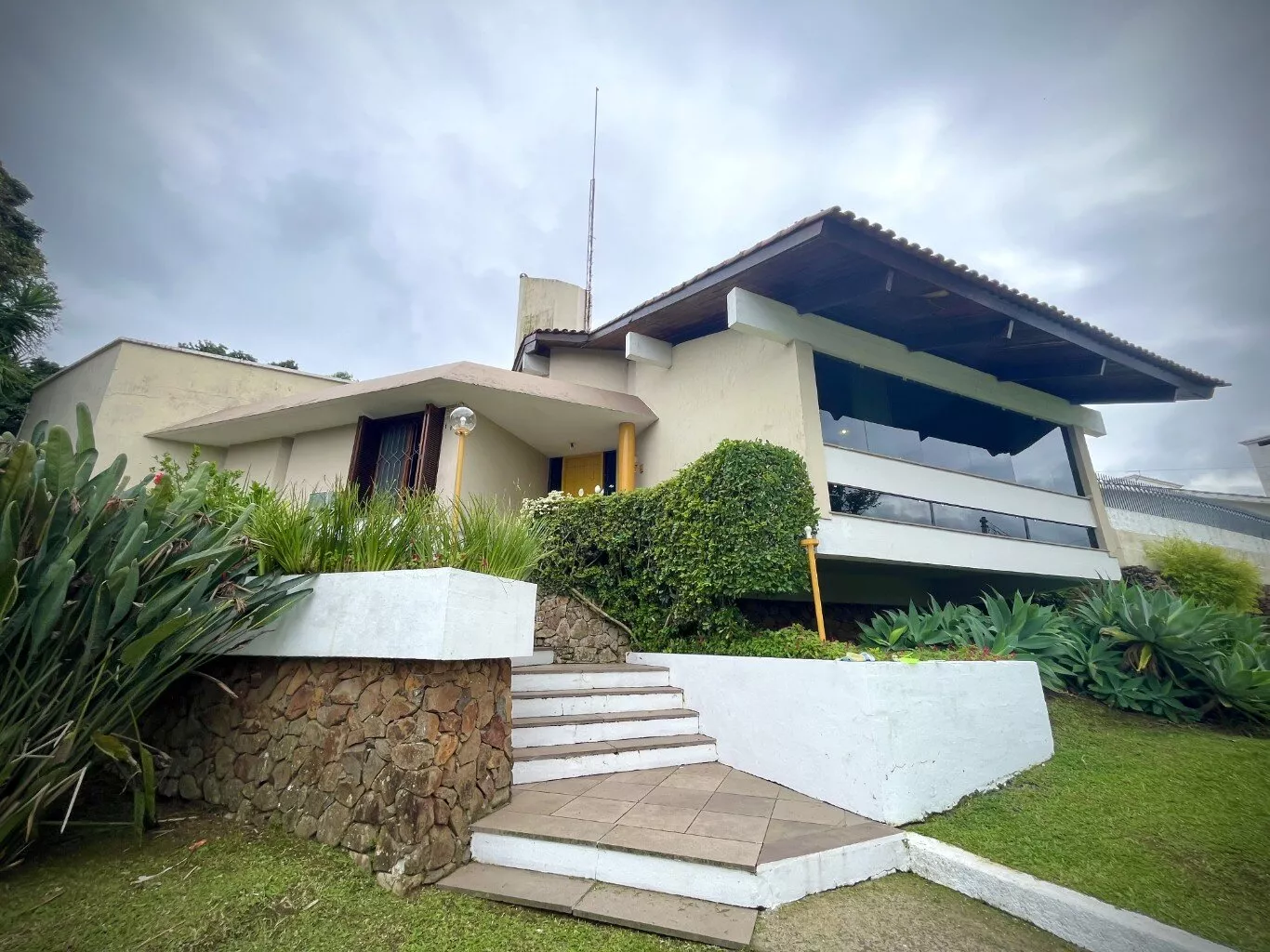CASA ALTO PADRÃO - Excelente residência com área construída de 312,39m², toda com laje de concreto estilo castelo, telhado de cerâmica, composta de sala de estar ampla com lareira, sala de jantar, escritório com banheiro anexo, três suítes individuais decoradas e com móveis sob medida, cozinha com móveis planejados, área de serviço, dependência de empregada com banheiro, área gourmet com churrasqueira, sala de jogos, piscina, terreno todo cercado, quadra de areia para diversas modalidades de esporte, lindas arvores ornamentais e frutíferas, canil, um ambiente aconchegante no centro da cidade com vista panorâmica.