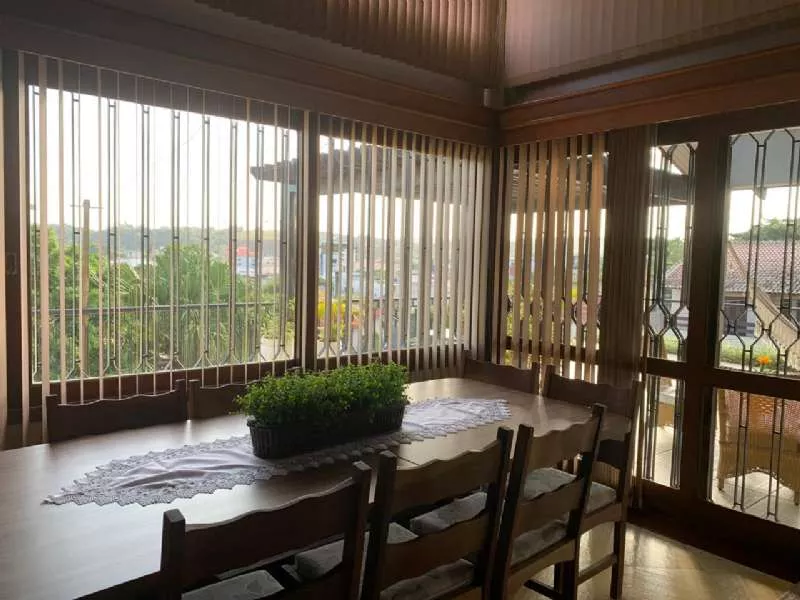 Casa de alvenaria, medindo 310,00m², com 04 dormitórios amplos, sendo 02 suítes (01 com closet), banheiro social, lavabo, cozinha com móveis sob medida e churrasqueira, 02 salas de estar, sala de jantar, sala de TV, escritório amplo, garagem para 02 carros, com lavabo e churrasqueira, terraço com pergolado e linda vista panorâmica; terreno medindo 470,00m², esquina.