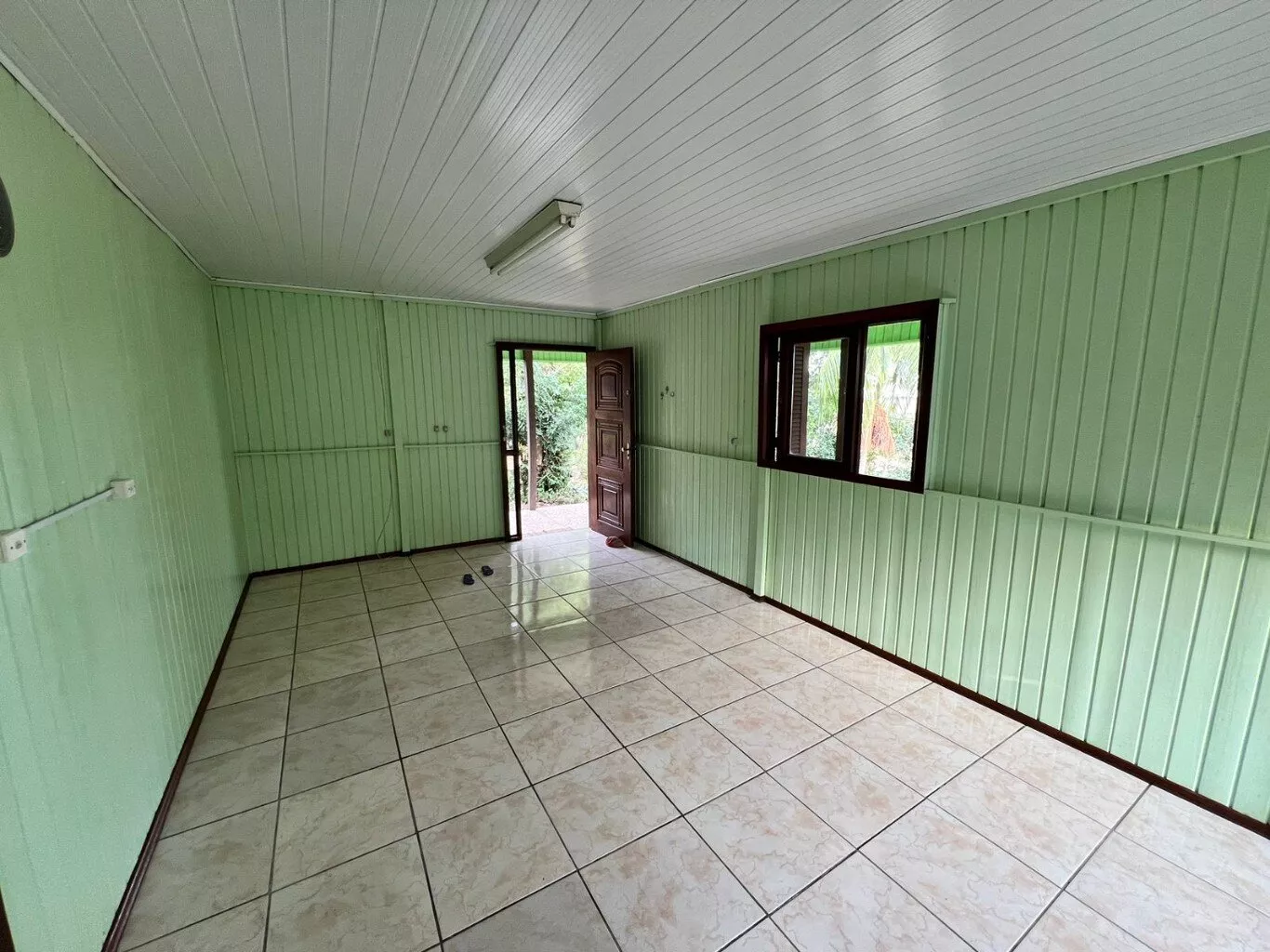 Com casa de madeira em ótimo estado de conservação com dois dormitórios, um banheiro, sala e cozinha integradas.