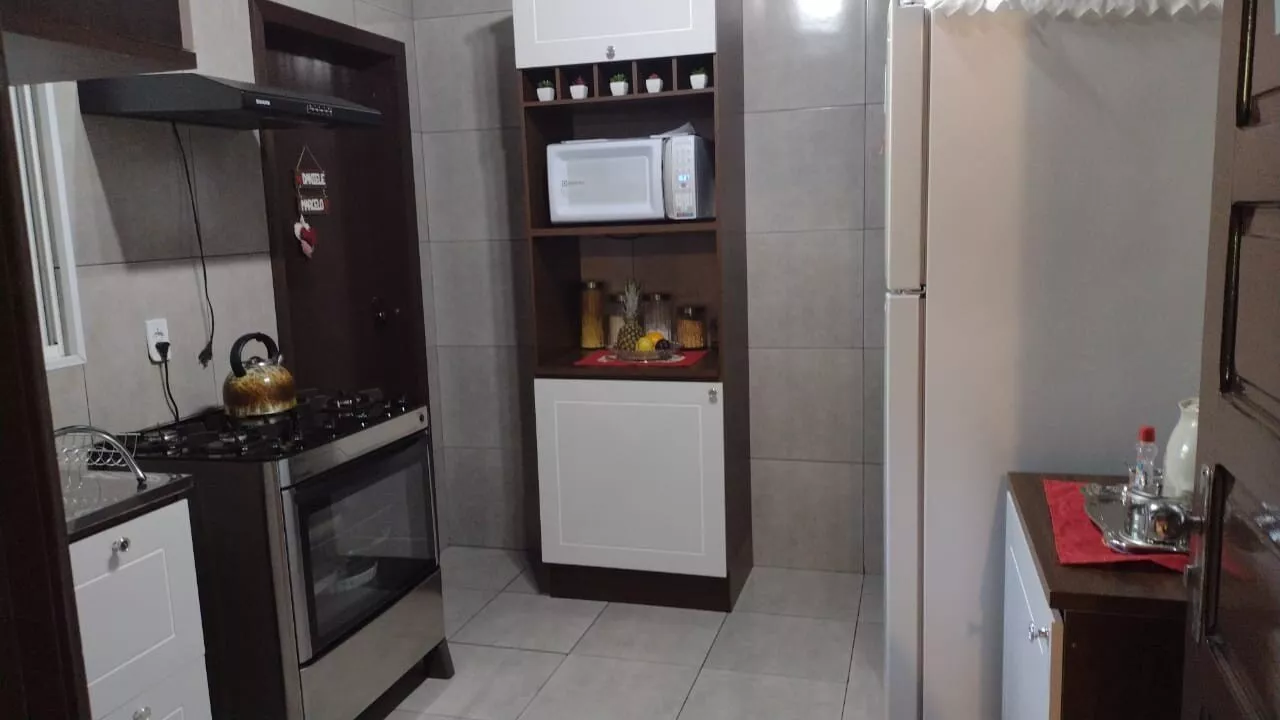 Casa de alvenaria, medindo 140,00m², com 04 dormitórios, sendo 01 suíte, 03 banheiros, sala de estar, cozinha e lavanderia. Garagem com churrasqueira. Terreno medindo 632,50m², todo cercado.