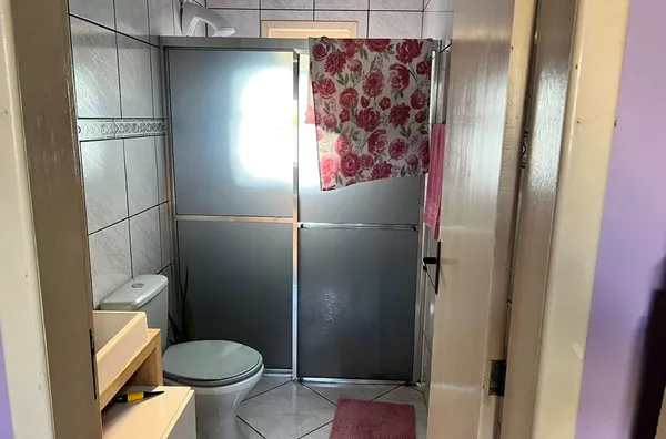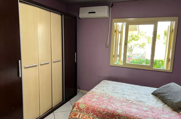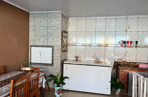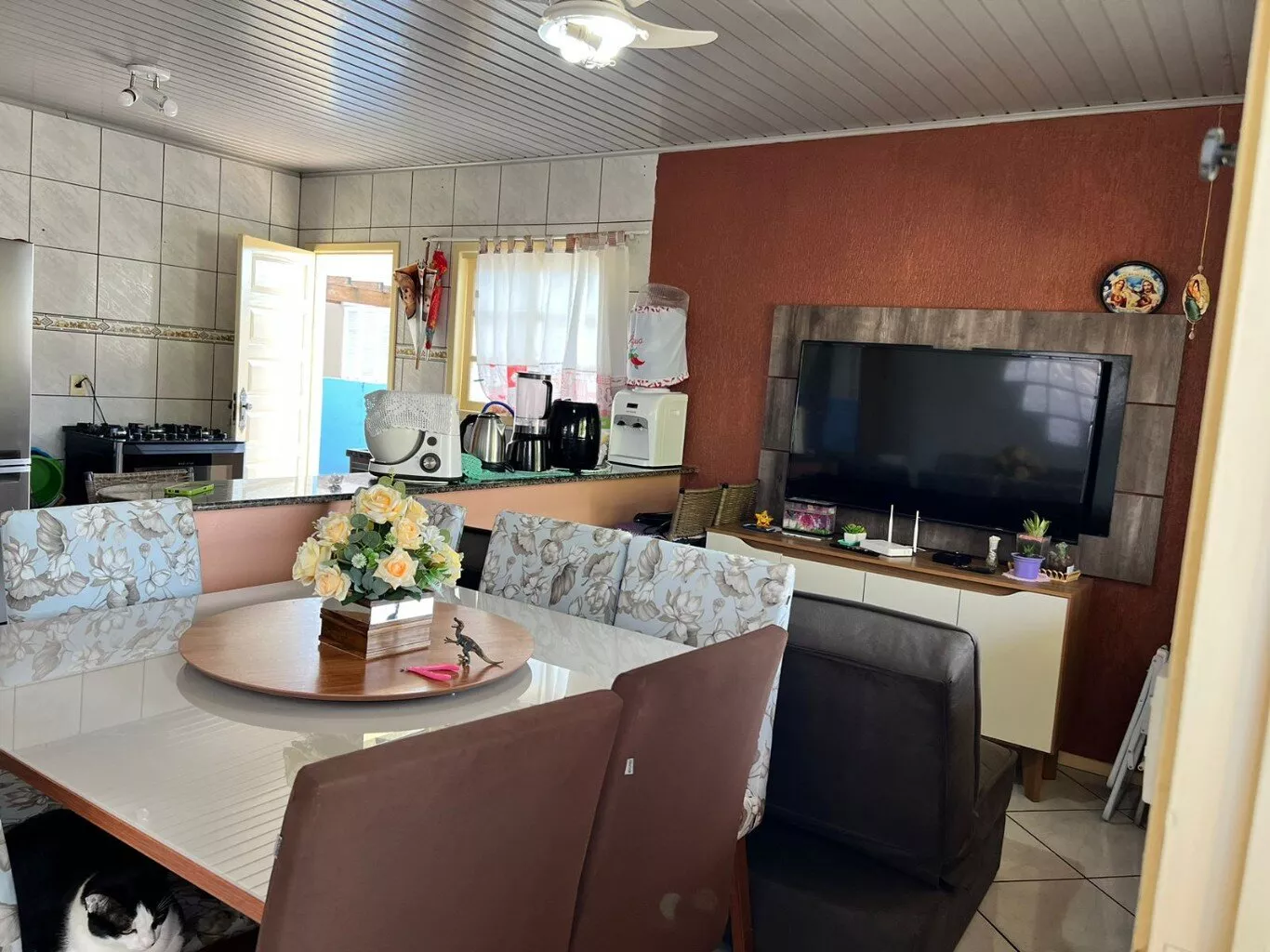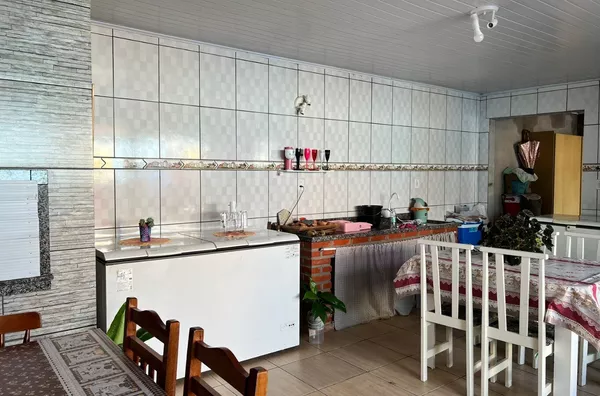 Casa de alvenaria, medindo 80,00m², com 3 dormitórios, sendo 1 suíte, com sala de estar ampla integrada à cozinha, banheiro social.